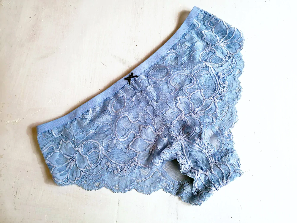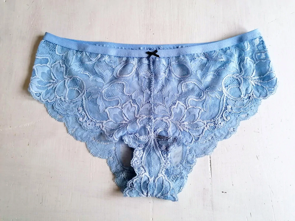 Nádherné, něžné francouzské kalhotky z kouzelné krajky v nebesky modré barvě.