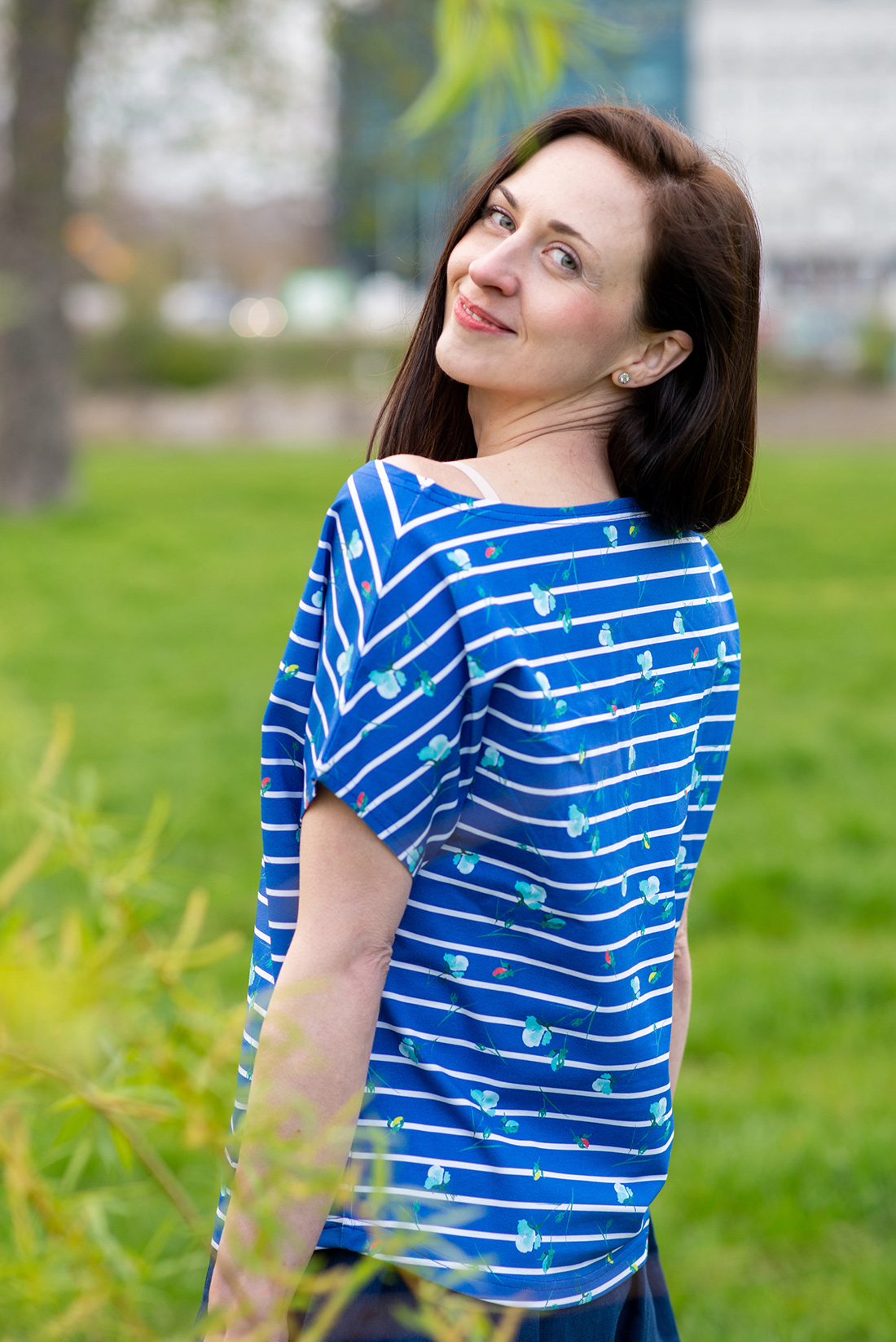 Jedinečný pruhovaný top volného střihu.